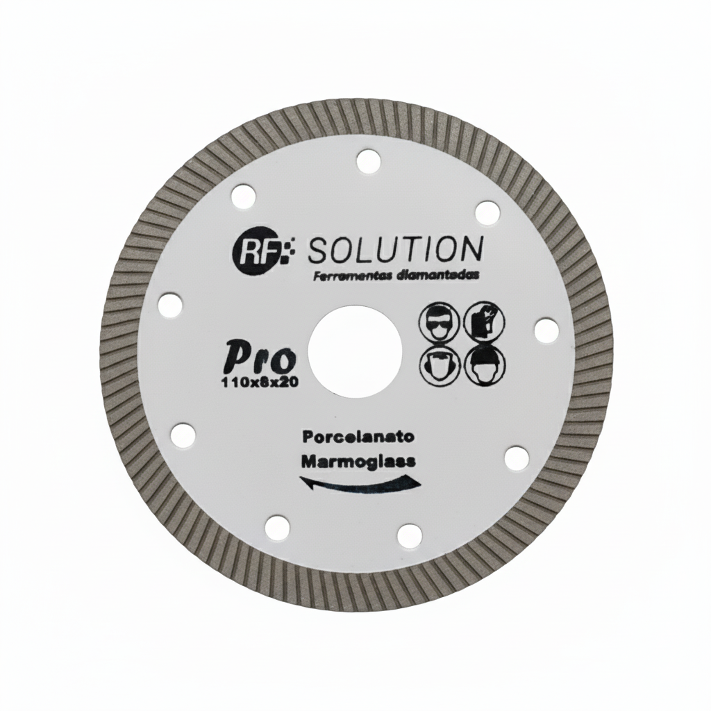 Disco Diamantado Turbo Extra Fino Porcelanato 110x8mm com Furo 20mm – RF Solution