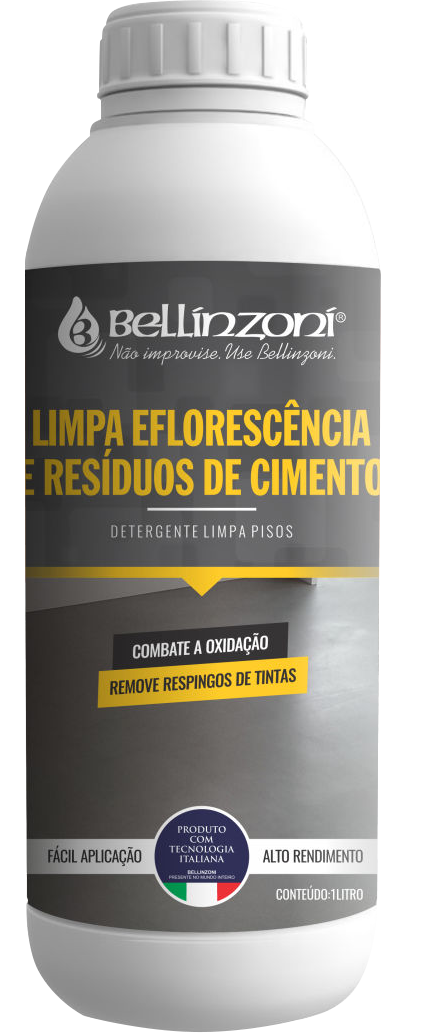 O Limpa Eflorescência e Resíduos de Cimento Bellinzoni é um detergente concentrado desenvolvido para remoção de sujidades difíceis, como eflorescências, restos de cimento, oxidações superficiais, respingos de tinta e drywall (gesso). Atua com alto poder de limpeza sem agredir superfícies resistentes, sendo ideal para uso profissional e pós-obra.
